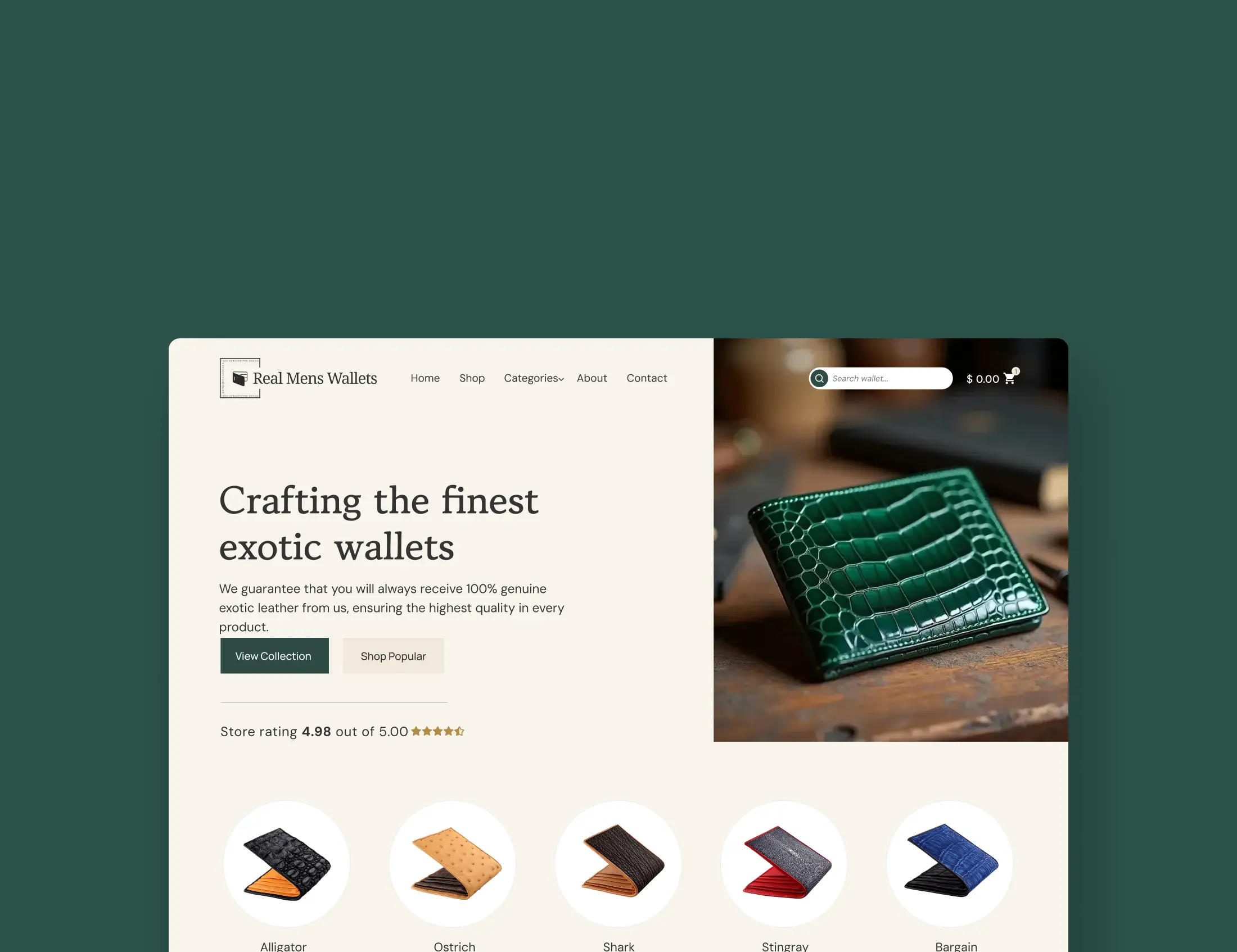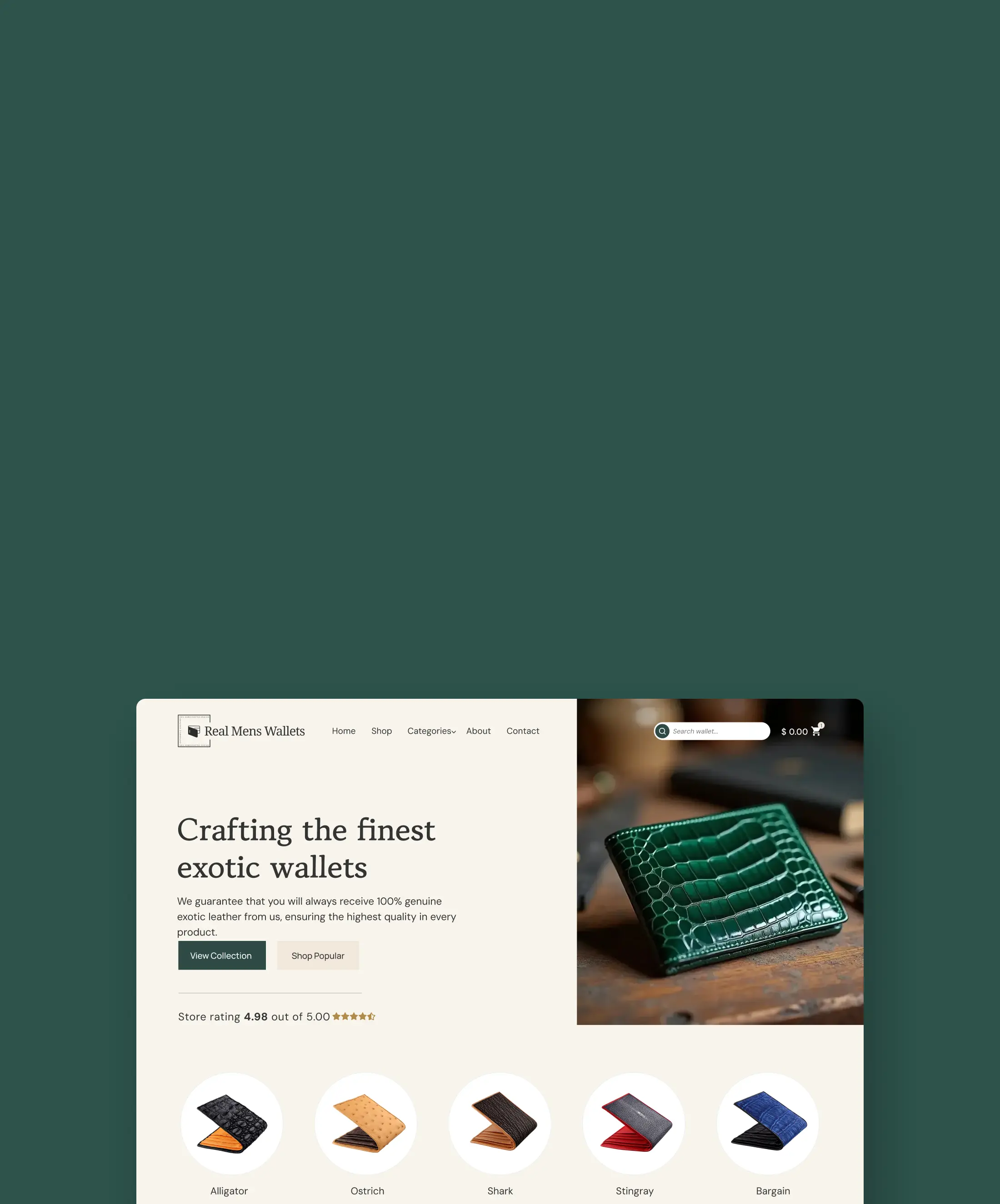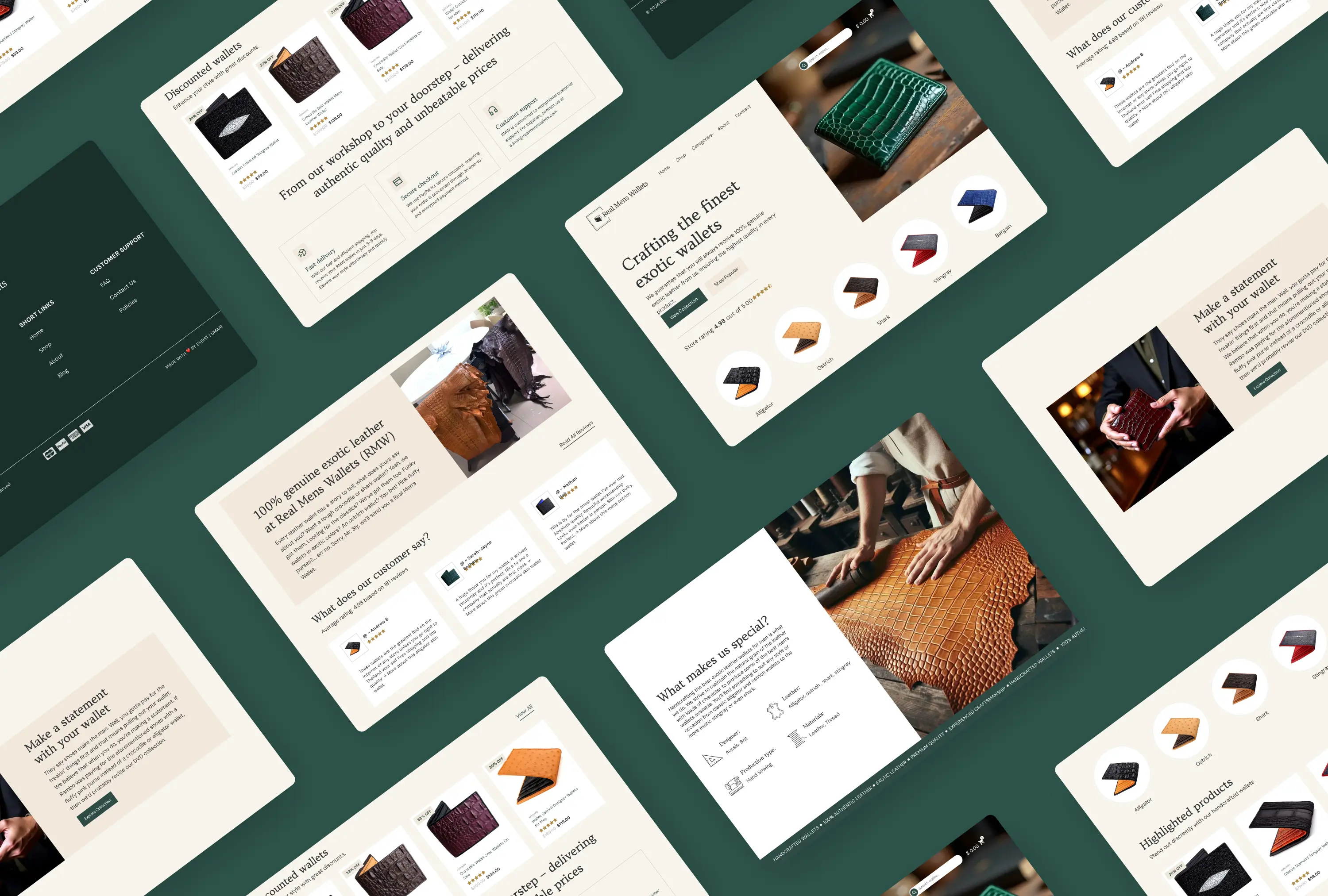Before designing, I explored wallet brands and competitor websites to understand what builds trust and drives purchases. The goal was to make Real Mens Wallet feel reliable.
