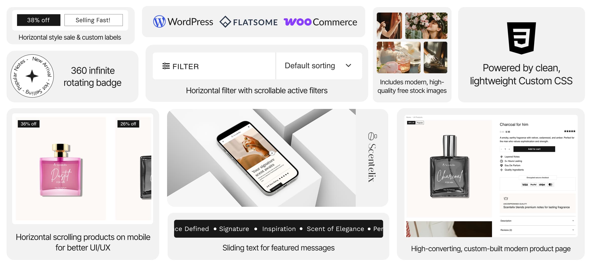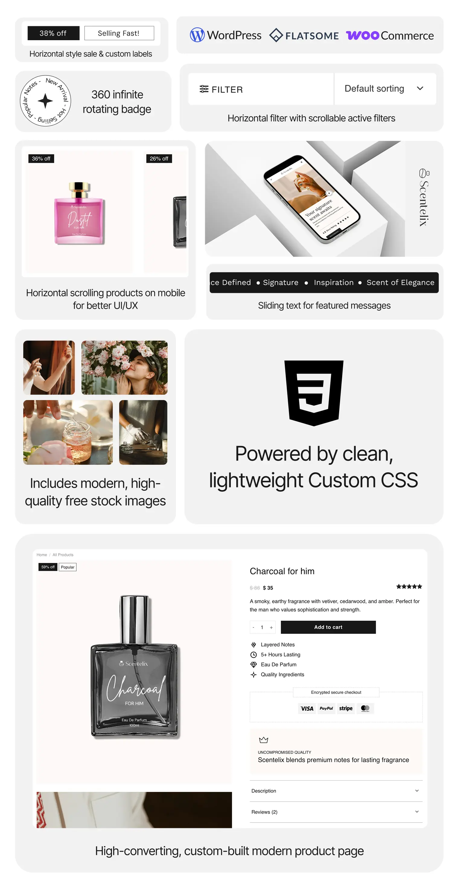 A sleek, modern Flatsome template perfect for fragrance, skincare, or elegant brand shops. Designed to impress and optimized for conversion